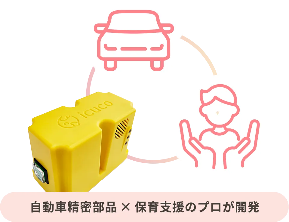 icucoは、保育の知見と自動車部品の最先端技術を融合させ、送迎用バスの置き去り防止装置の開発に取り組んでいます。